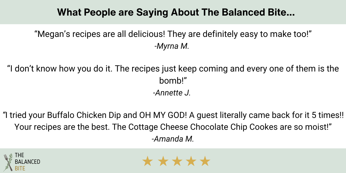 Hi, I’m Megan! I am the author and developer of The Balanced Bite where I share recipes that are macro-friendly to help busy individuals look and feel their best! I am a mom to an energetic young son and loving wife to my husband, Nils. I also am the Assistant Head Coach with YQL Nutrition where I help my clients apply nutrition principles to their unique lives!