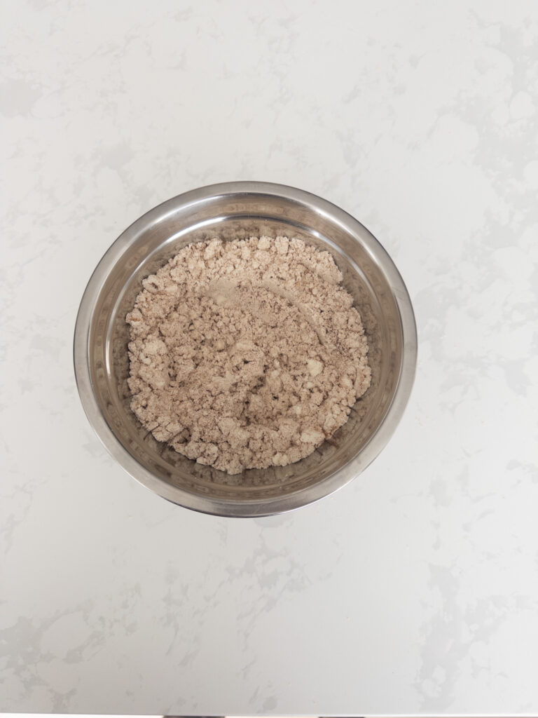 In a large bowl, mix together dry ingredients.
