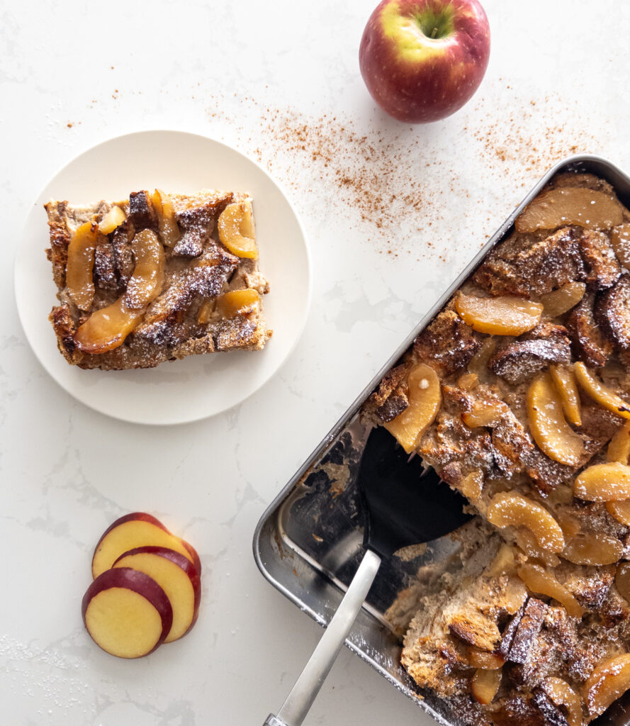 If you’re craving all the cozy flavors of fall but want something light and nutritious to start your day, this Apple Pie French Toast Bake is the perfect solution! Combining the warm spices of cinnamon, allspice, and a rich apple pie filling with protein-packed ingredients, it’s a healthier take on traditional French toast with an indulgent twist.