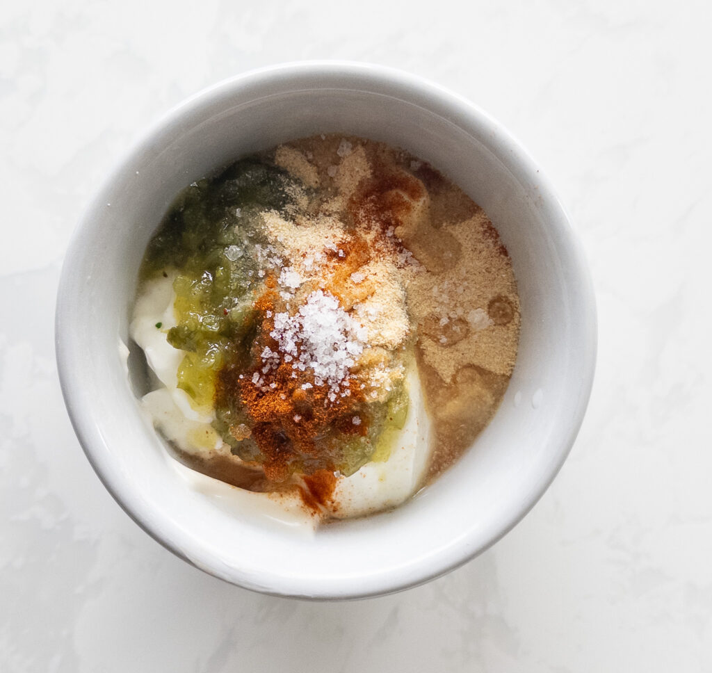 Combine Ingredients: In a small bowl, combine the light mayonnaise, Greek yogurt, sweet pickle relish, yellow mustard, white vinegar, garlic powder, onion powder, and a pinch of paprika.
