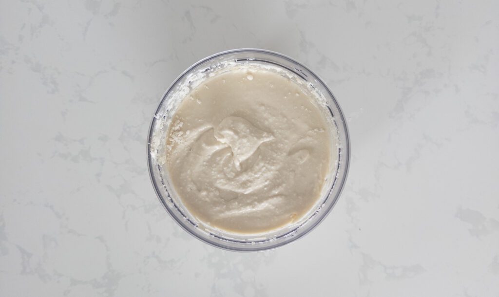 • In a food processor or blender, combine the cottage cheese, vanilla extract, sugar-free maple syrup, and vanilla protein powder. Blend until smooth and well combined.