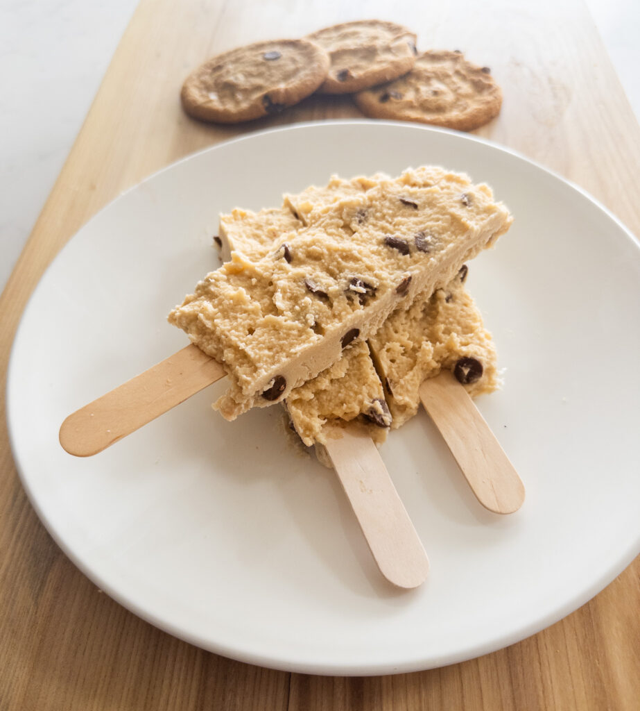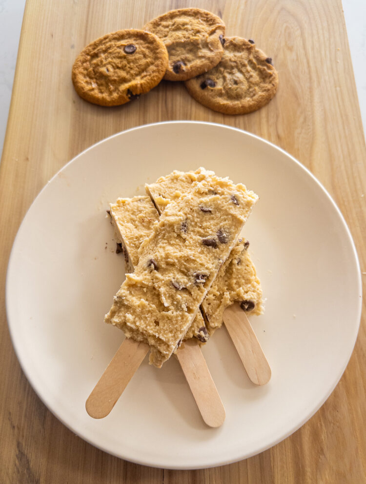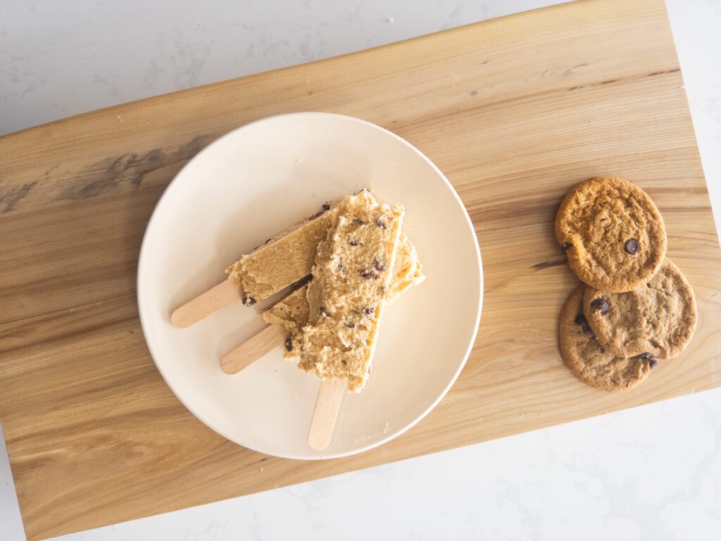 • Serve the high-protein cookie dough bars on popsicle sticks immediately, or store them in an airtight container in the freezer for later enjoyment. If enjoying later, let thaw for 5-10 minutes before eating for optimal flavor.