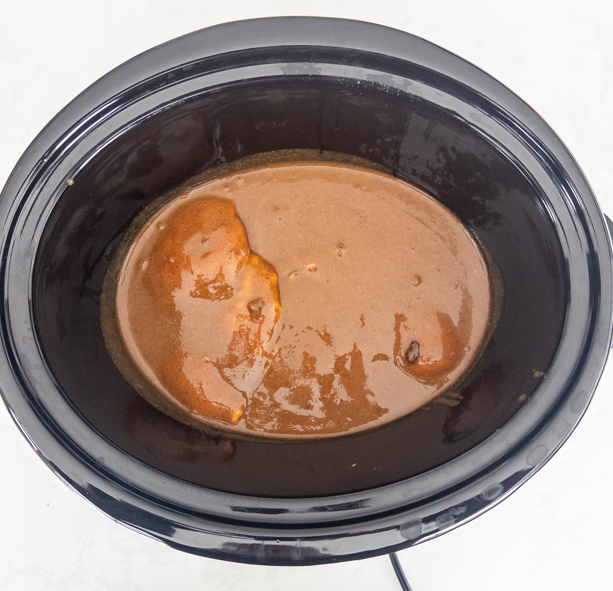 • Place the 800g chicken breasts in the crockpot.