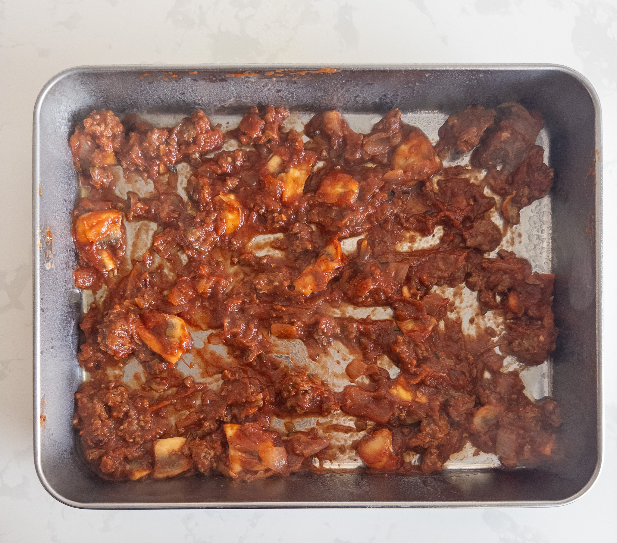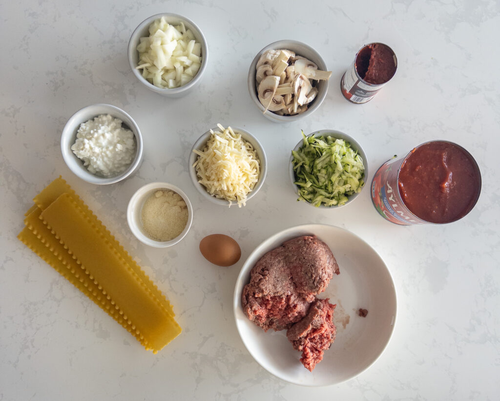 Prepare Veggie Layer: Add zucchini and mushrooms to the skillet with the cooked beef. Cook for 5–7 minutes, stirring, until veggies are softened and most of the moisture evaporates.