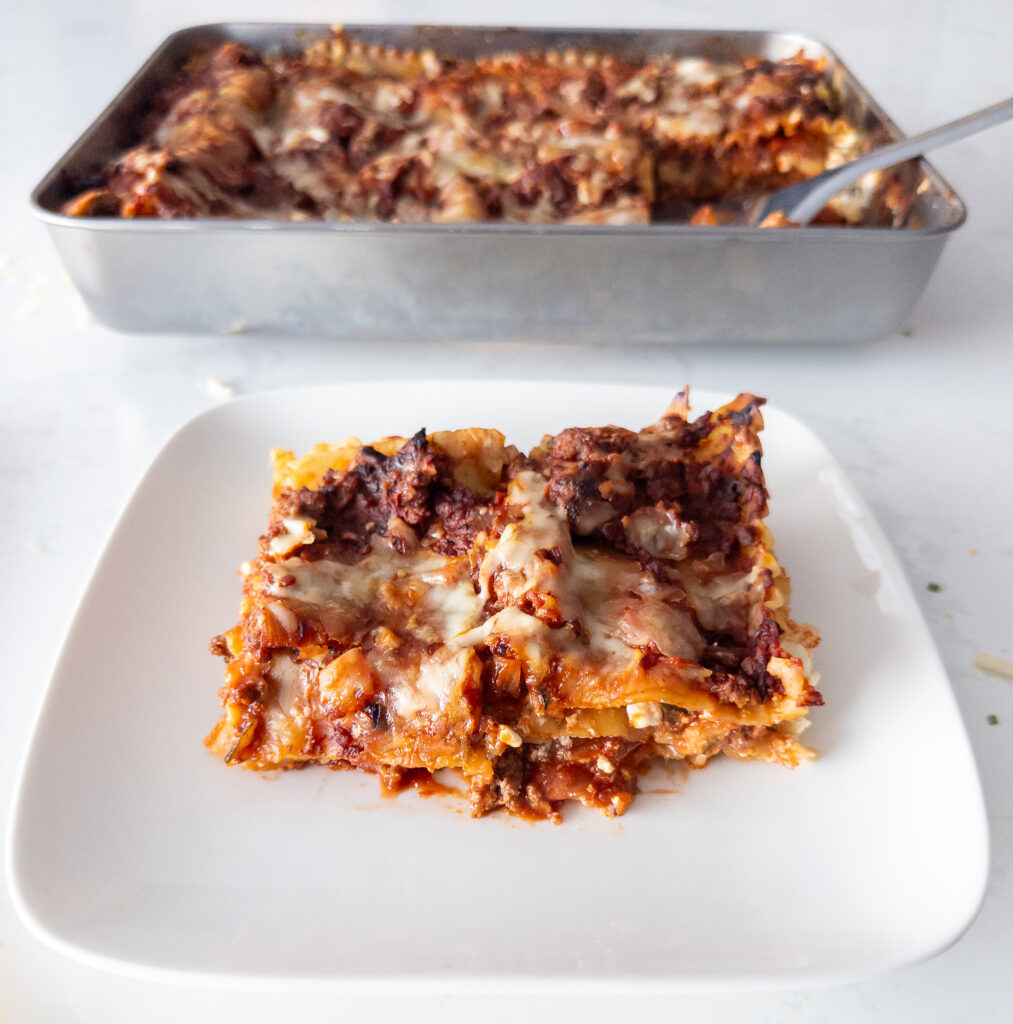 Rest & Serve: Let lasagna cool for 10 minutes before slicing. Enjoy!