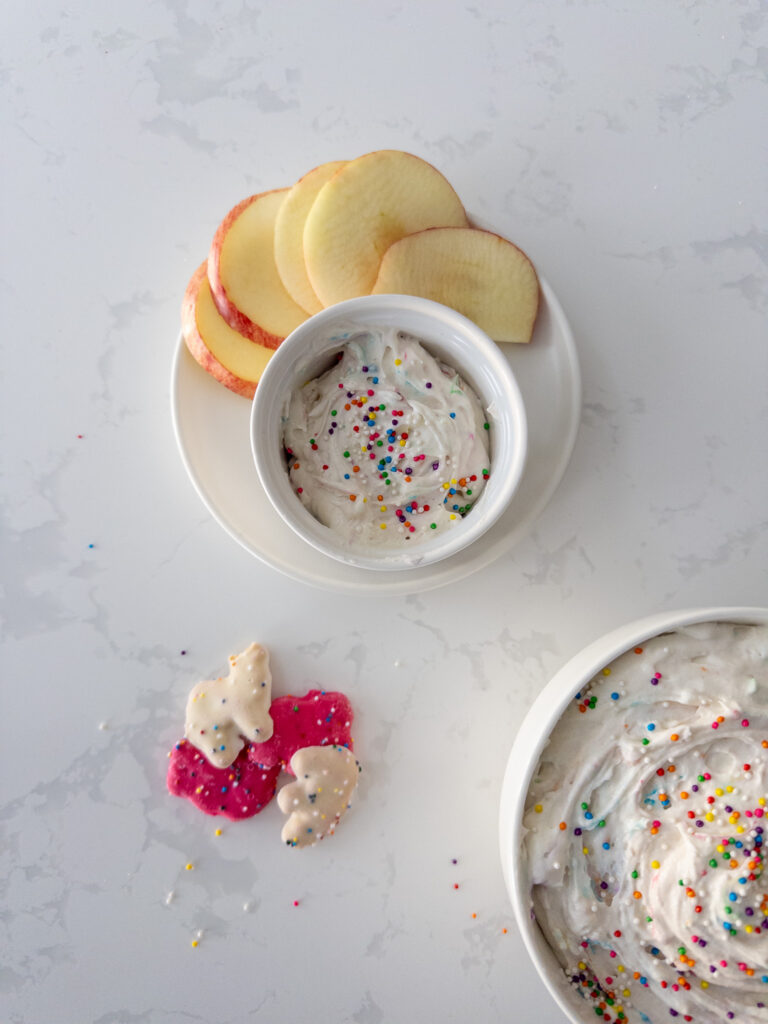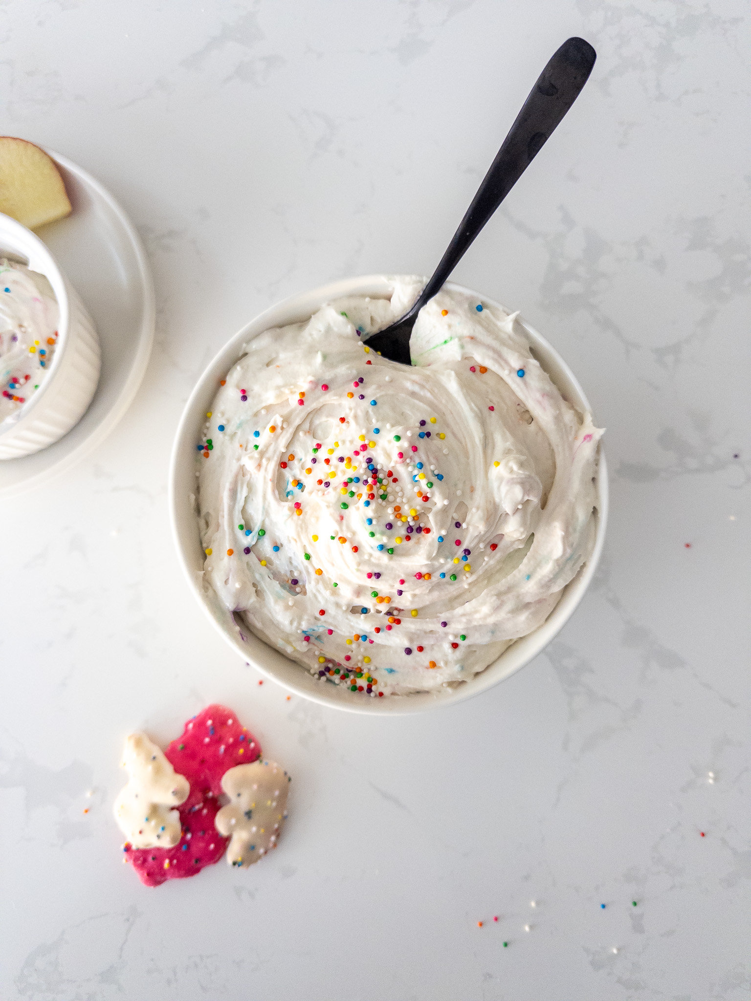 Serve chilled with your choice of dippers, such as: Fresh fruit (strawberries, apple slices, or banana chunks), graham crackers or vanilla wafers, rice cakes or mini pretzels for a salty-sweet twist.