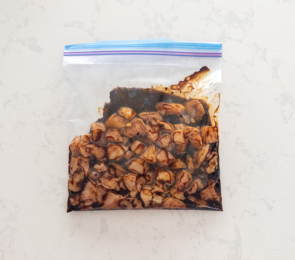 Marinate the Chicken: Place the chicken chunks in a shallow dish or resealable plastic bag. Pour the marinade over the chicken, ensuring it’s evenly coated. Cover the dish or seal the bag and marinate in the refrigerator for at least 30 minutes, or preferably up to 2 hours.