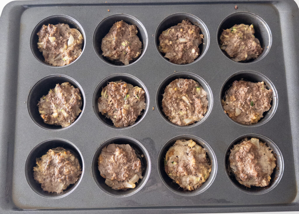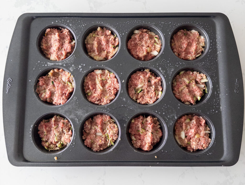 If you don’t have zucchini, try using grated carrots or finely chopped spinach for a different veggie twist (macros may differ). Squeeze out the excess water from the zucchini to avoid excess moisture in the meatloaf cups.