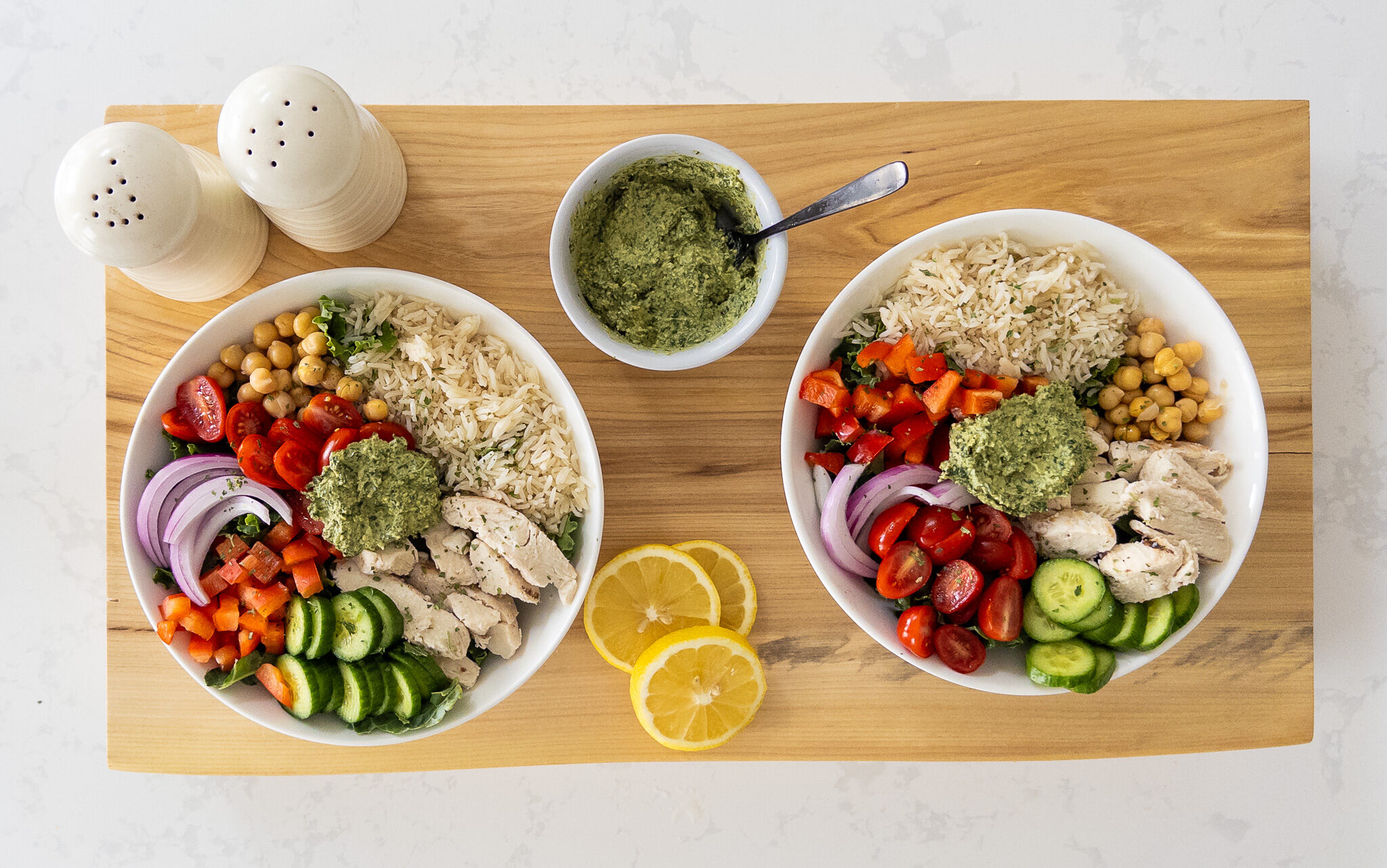 Looking for a quick, delicious, and nutritious meal to add to your weekly rotation? These Mediterranean Pesto Chicken Bowls are packed with fresh flavors and are incredibly easy to make. Whether you’re meal-prepping for the week or need a healthy dish to bring to a gathering, this recipe is sure to become a favorite. It also features one of my FAVORITE sauces, my Lightened-up Basil Pesto!