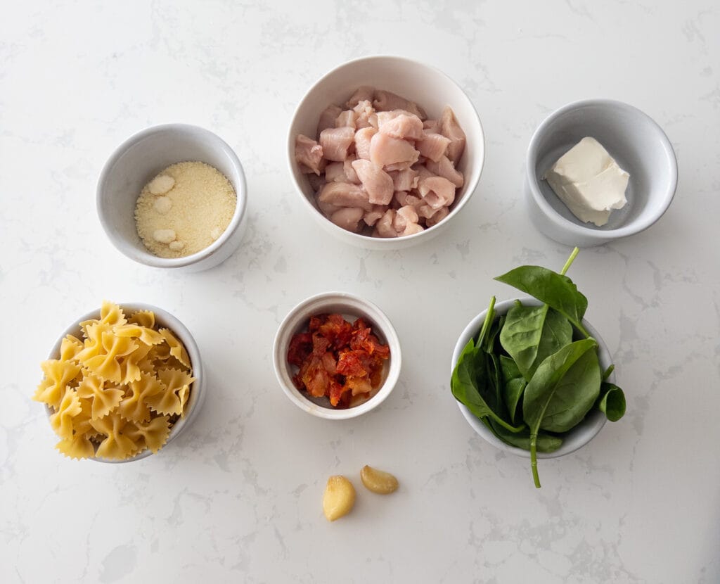 • 225 g pasta (bowtie or penne) (about 2 cups)