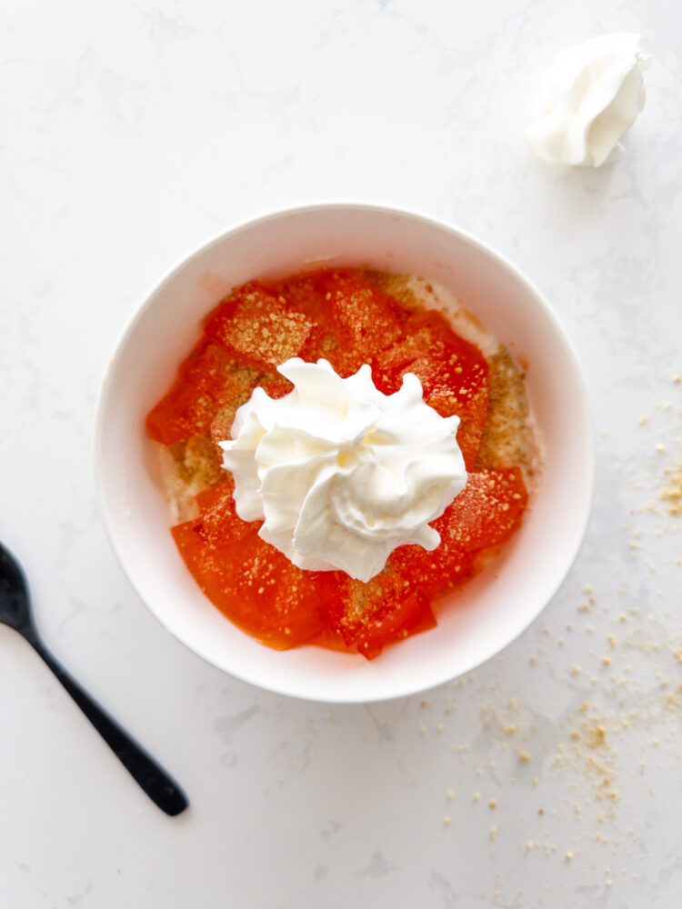 - Top with whipped cream and sprinkle with graham cracker crumbs.