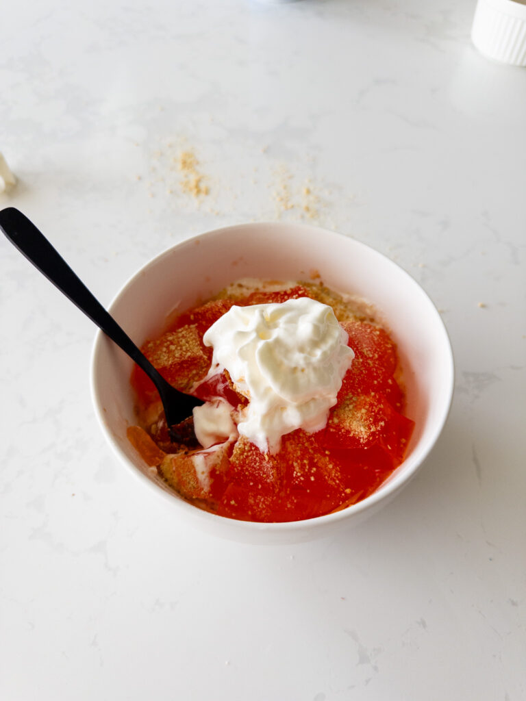 - Add the orange Jell-O cups to the bowl and stir until evenly combined.