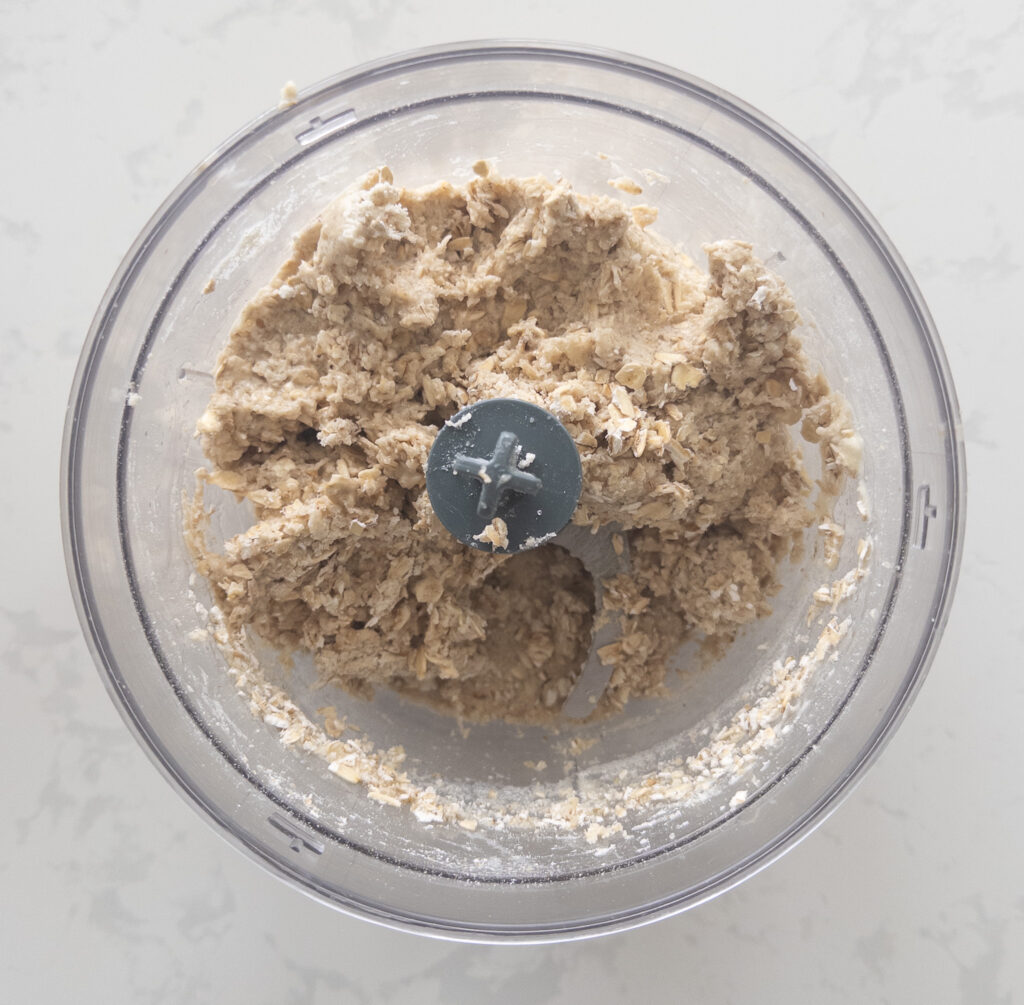 In a food processor, pulse the oats until finely ground. Add vanilla protein powder, zero-calorie sweetener, sugar-free maple syrup, and melted coconut oil. Pulse until the mixture comes together