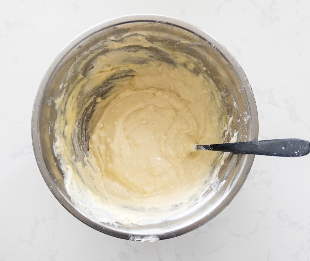 Gradually mix in 60g vanilla protein powder and 1 teaspoon vanilla extract until well combined.