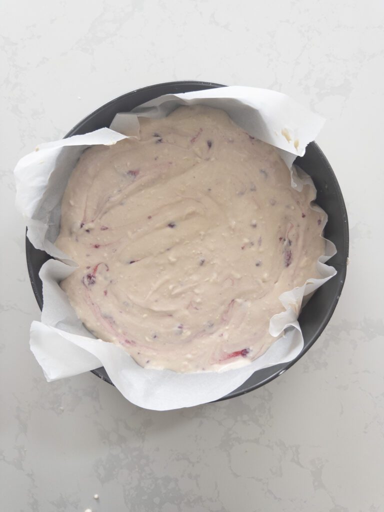 Preheat your oven to 350°F (175°C). Line an 8-inch round springform pan with parchment paper. (For a larger cheesecake, see notes below.)