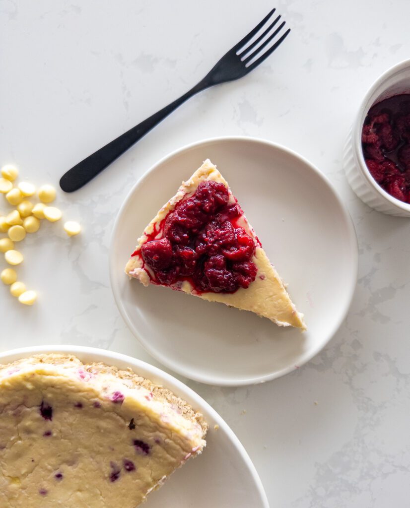 Next time you’re invited to a BBQ or planning a social event, bring this White Chocolate Raspberry Cheesecake. It’s a guaranteed hit that will leave everyone asking for the recipe and you feeling great knowing you got in some protein!