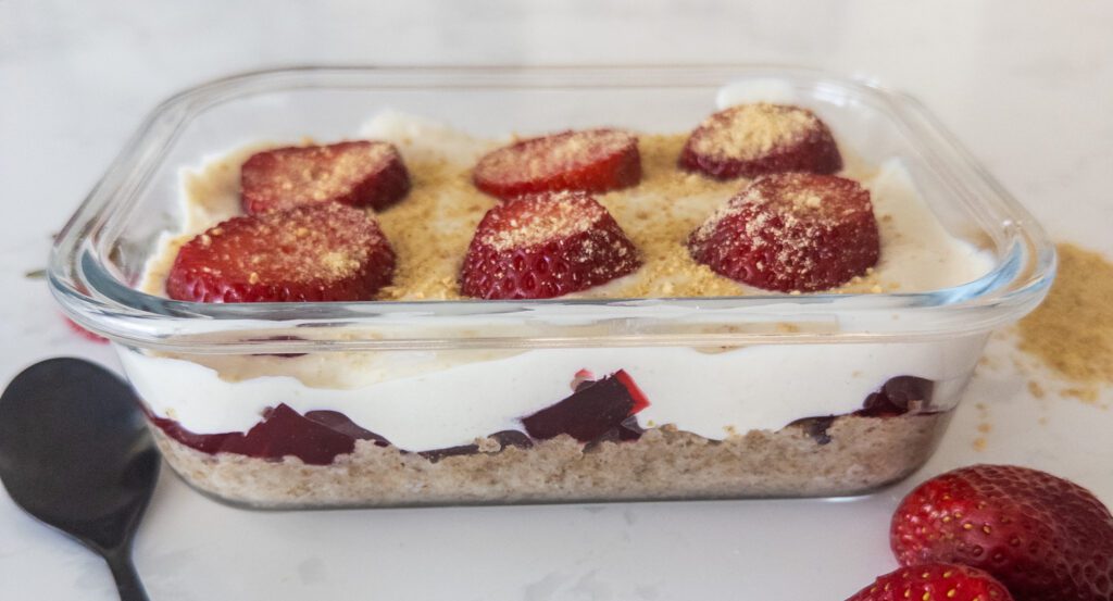Searching for a healthy dessert that ticks all the right boxes? Our High-Protein Strawberry Cheesecake Parfait is your new go-to! Not only does it offer a high protein kick, but it’s also low in calories and bursting with fresh flavors. This makes it the perfect snack or dessert for anyone looking to maintain a healthy lifestyle without sacrificing taste. I know this recipe was my go-to in my last fat loss phase and wanted to share it with you so you could also enjoy!